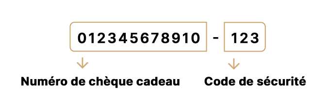 Chaque coffret contient un code de connexion, composé d'un numéro de chèque cadeau et d'un code de sécurité à trois chiffres, qu'il vous faut conserver précieusement.